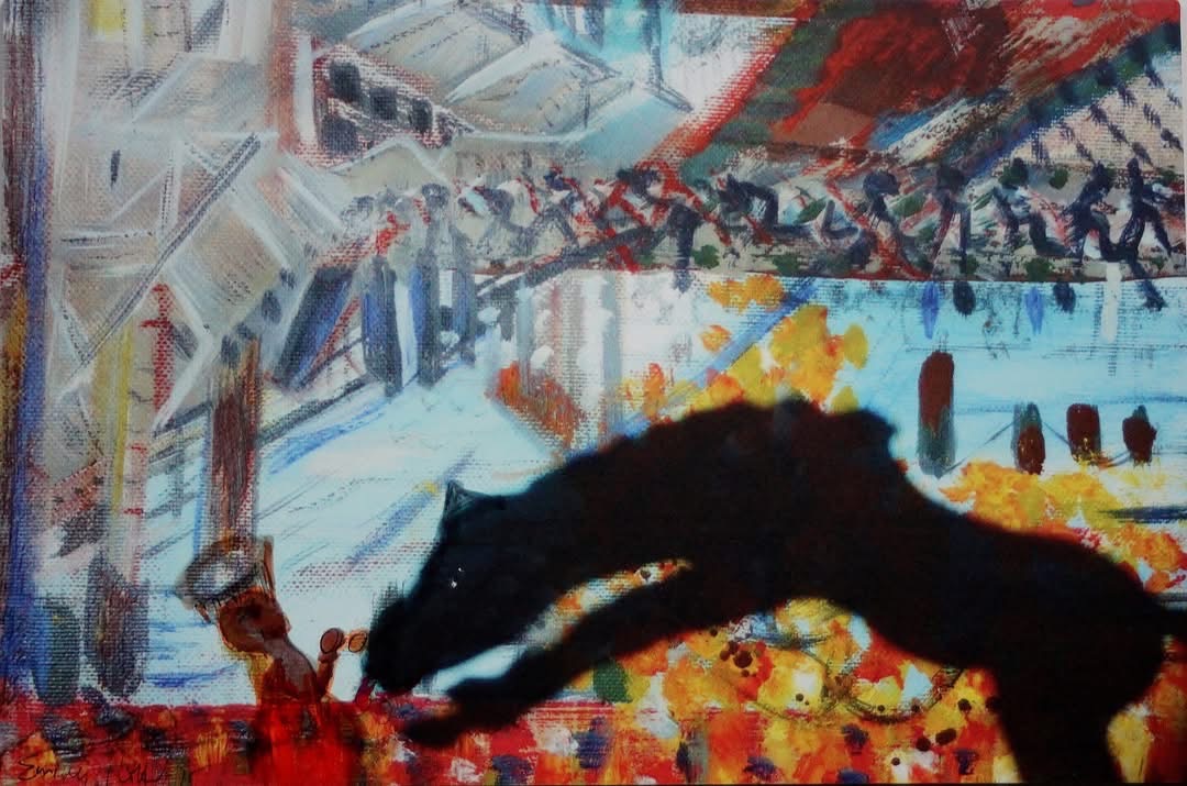 Der schwarze Hund schnüffelt vor den Stadttoren nach Essbarem jeder Art.